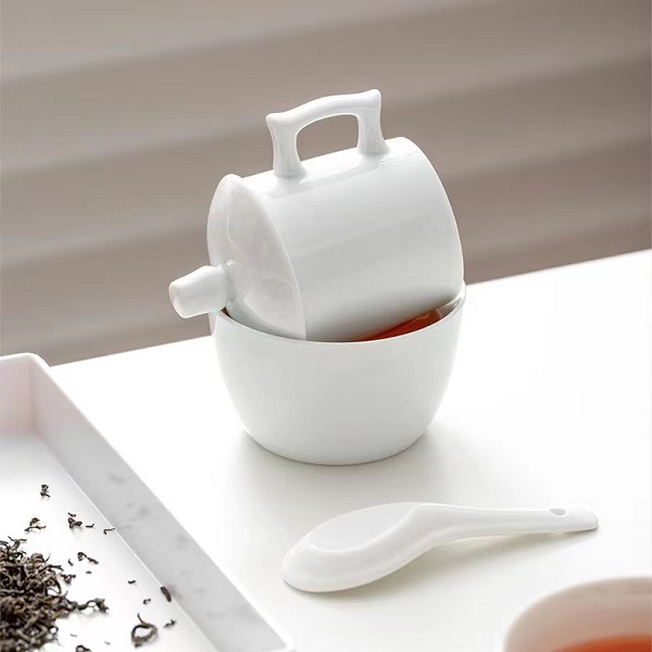 - Las tazas de té y la tetera encajan muy bien en la bandeja para servir de bambú. Las tazas de té son aptas para lavavajillas.