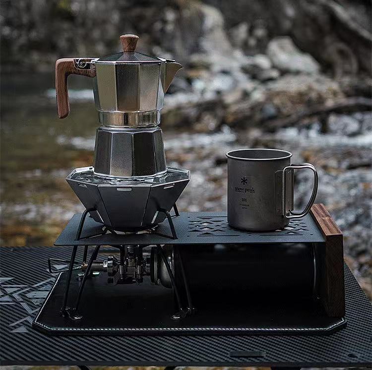 3. Coloque el recipiente para polvo en la olla inferior, apriete las partes superior e inferior de la olla de moca y luego colóquelo en una estufa de cerámica eléctrica para calentar a fuego alto;