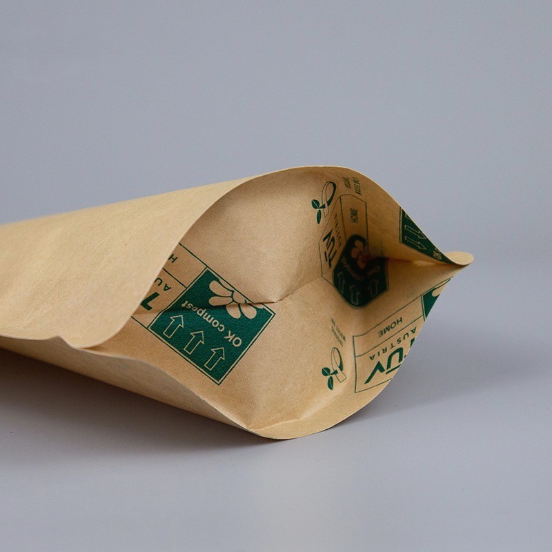 - Fabricado con película PLA biodegradable y papel kraft, ofrece una solución de embalaje ecológica y compostable.